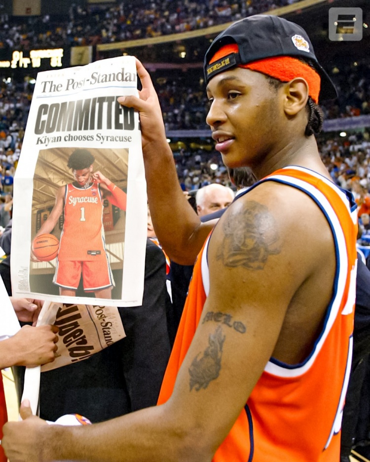 安东尼在雪城大学的那个冠军至今仍是传奇。2023年3月,当球队为即将退休的博伊海姆教练在航母穹顶球馆举办最后一场主场比赛时,还一同举行了那次夺冠的20周年纪念活动。而且当雪城大学的球员们在夏季学期的第一次野球赛中打量新来的大一新生时,比赛已经不再在老曼利球馆举行了。他们现在在卡梅隆-K-安东尼篮球中心打球,这座占地54000平方英尺(约合5017平方米)的训练馆于2009年开放,而这都要归功于那个“小胖子”。