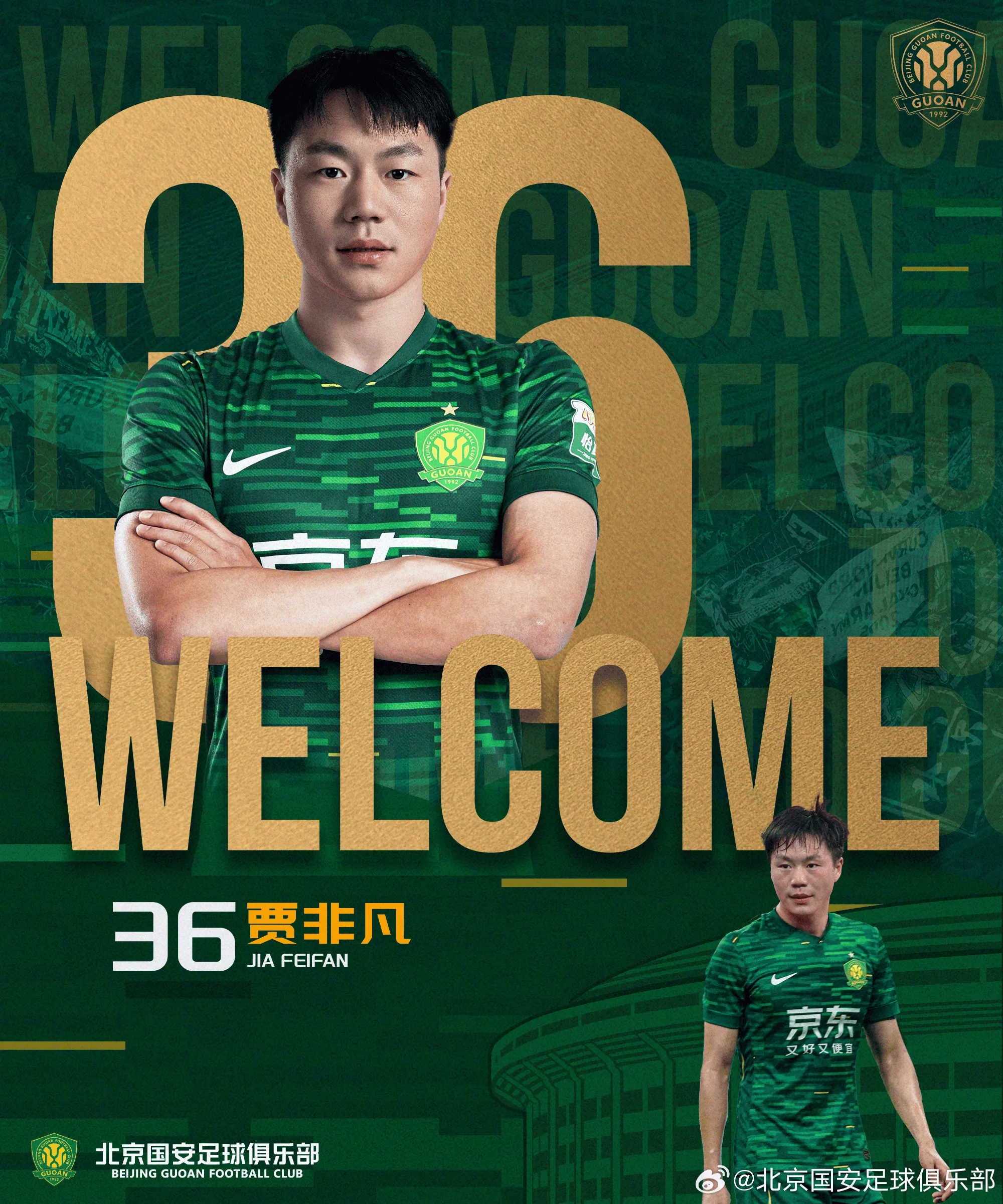 贾非凡正式加盟北京国安足球俱乐部,他将身披36号球衣,代表北京国安出战本赛季中超联赛、亚冠联赛、足协杯等各项赛事。