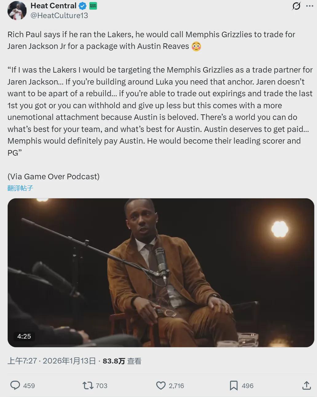 湖人首发:东契奇、斯玛特、拉拉维亚、詹姆斯、艾顿。国王首发:威少、拉文、德罗赞、阿丘瓦、雷诺。湖人后卫里夫斯因伤继续休战,今天詹姆斯的经纪人里奇-保罗在播客中说道:“我会用里夫斯交易灰熊的3J,这对湖人和里夫斯都好。”