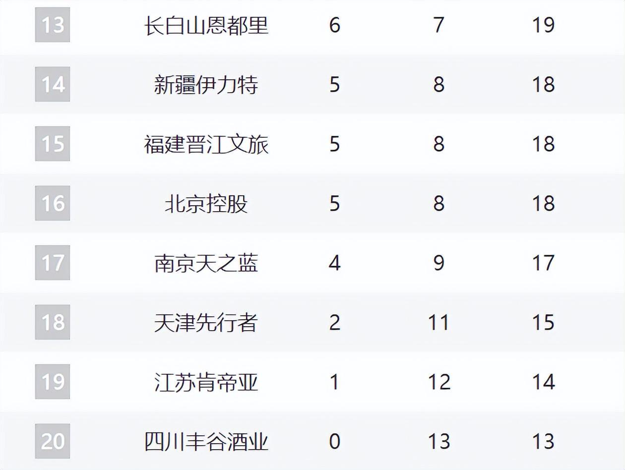 13-17分别是吉林、新疆、福建、北控、同曦。这里的新疆肯定是焦点了,在换帅之后,这轮大胜江苏,不知道后续能不能崛起。至于吉林和北控都输球了,但北控张庆鹏还不下课的话,他们的困境还是非常大。同曦还是球队的实力配置太差,现在四连败了。福建则击败天津,终结了三连败。