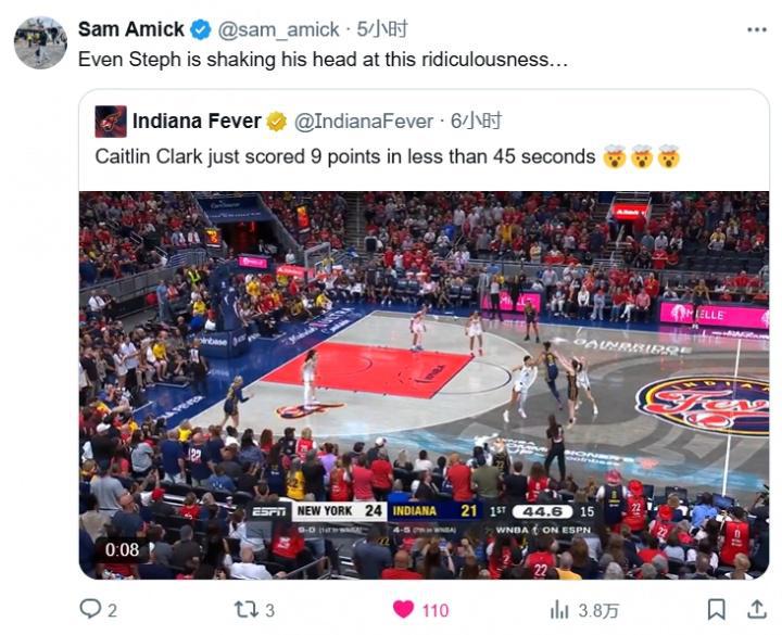 对此,名记Sam Amick点评说:“库里看了这种荒谬事情都要摇头……”