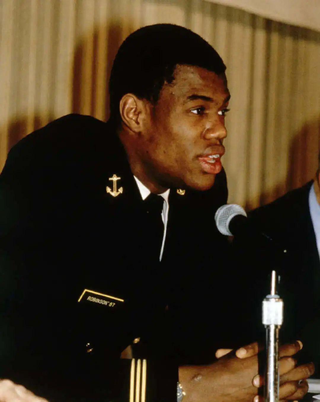 拒绝早早进入NBA拿百万年薪,享受香车美女相伴的生活,1987年罗宾逊选择海军服役因此获上将之名。