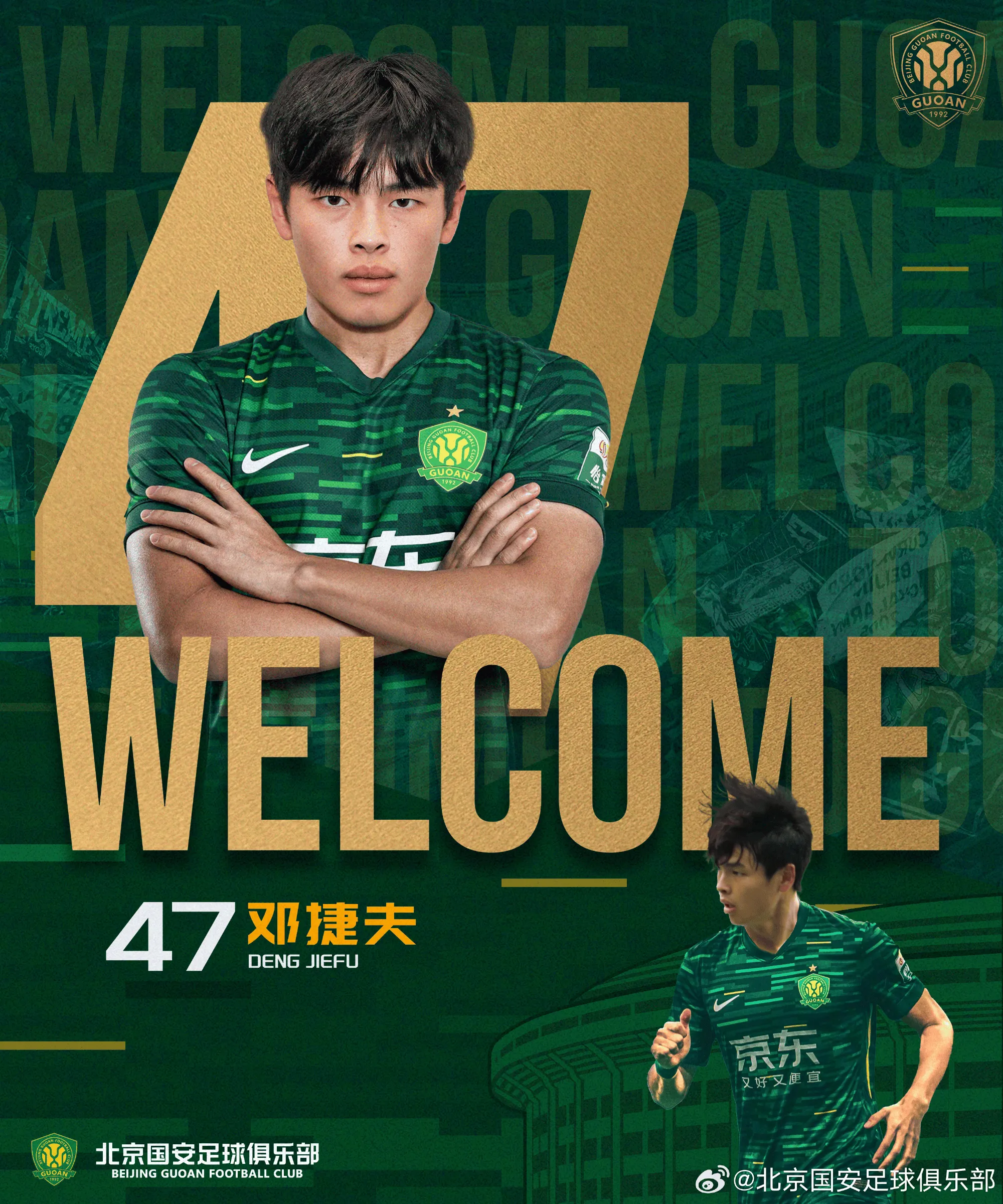 邓捷夫正式加盟北京国安足球俱乐部,他将身披47号球衣,代表北京国安出战本赛季中超联赛、亚冠联赛、足协杯等各项赛事。