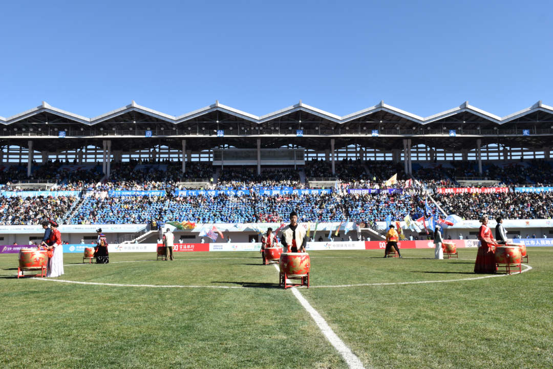 滇超联赛丽江队VS文山队开赛前,文化鼓舞震撼登场。丽江融媒记者 杨四娟 摄